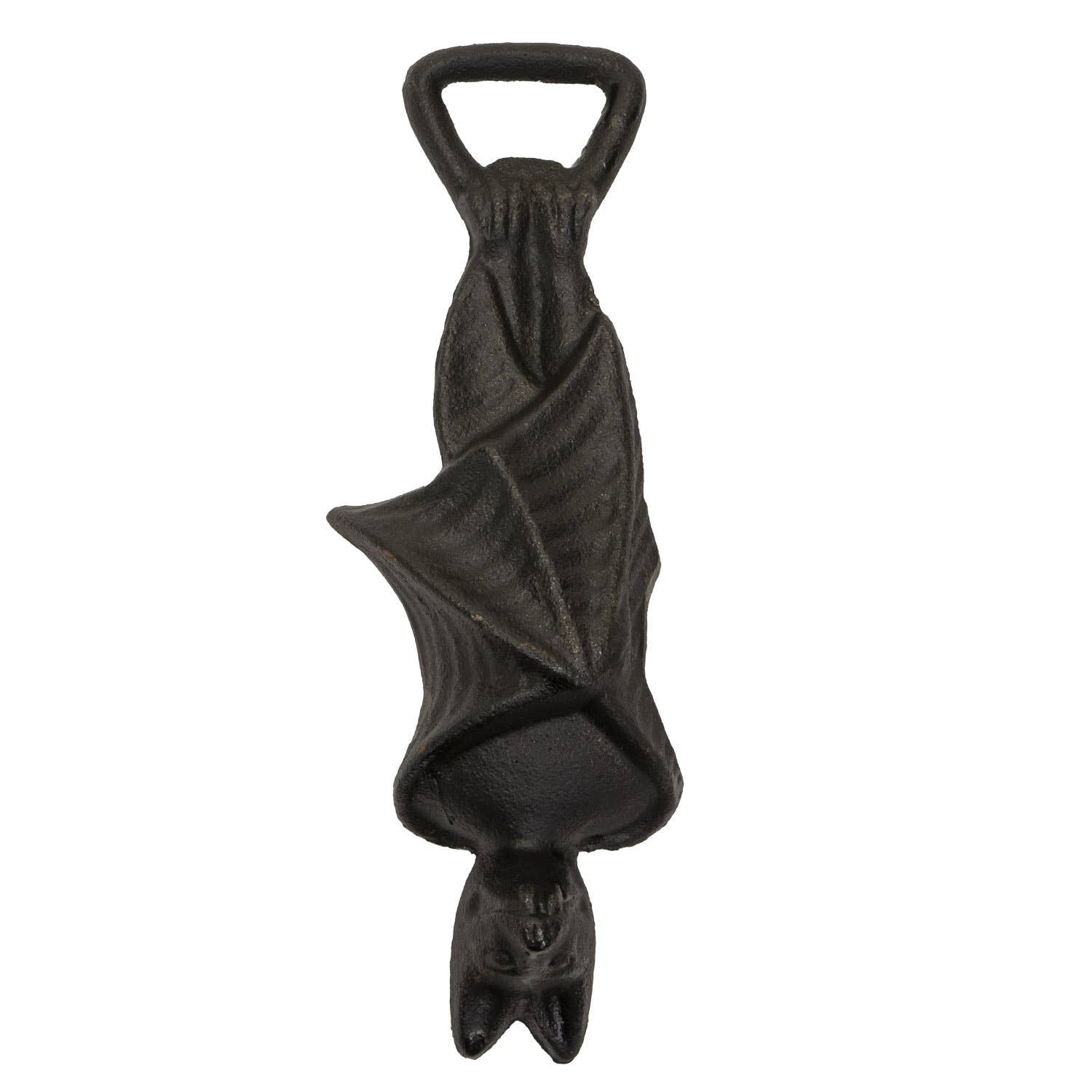 Unleash the mystical power of this Hanging Bat Bottle Opener! Made of durable cast iron, it features medieval-style Gargoyle Bookends for added flair. Perfect for adding a touch of dark fantasy to your bar or kitchen. Open your bottles with style and intrigue.