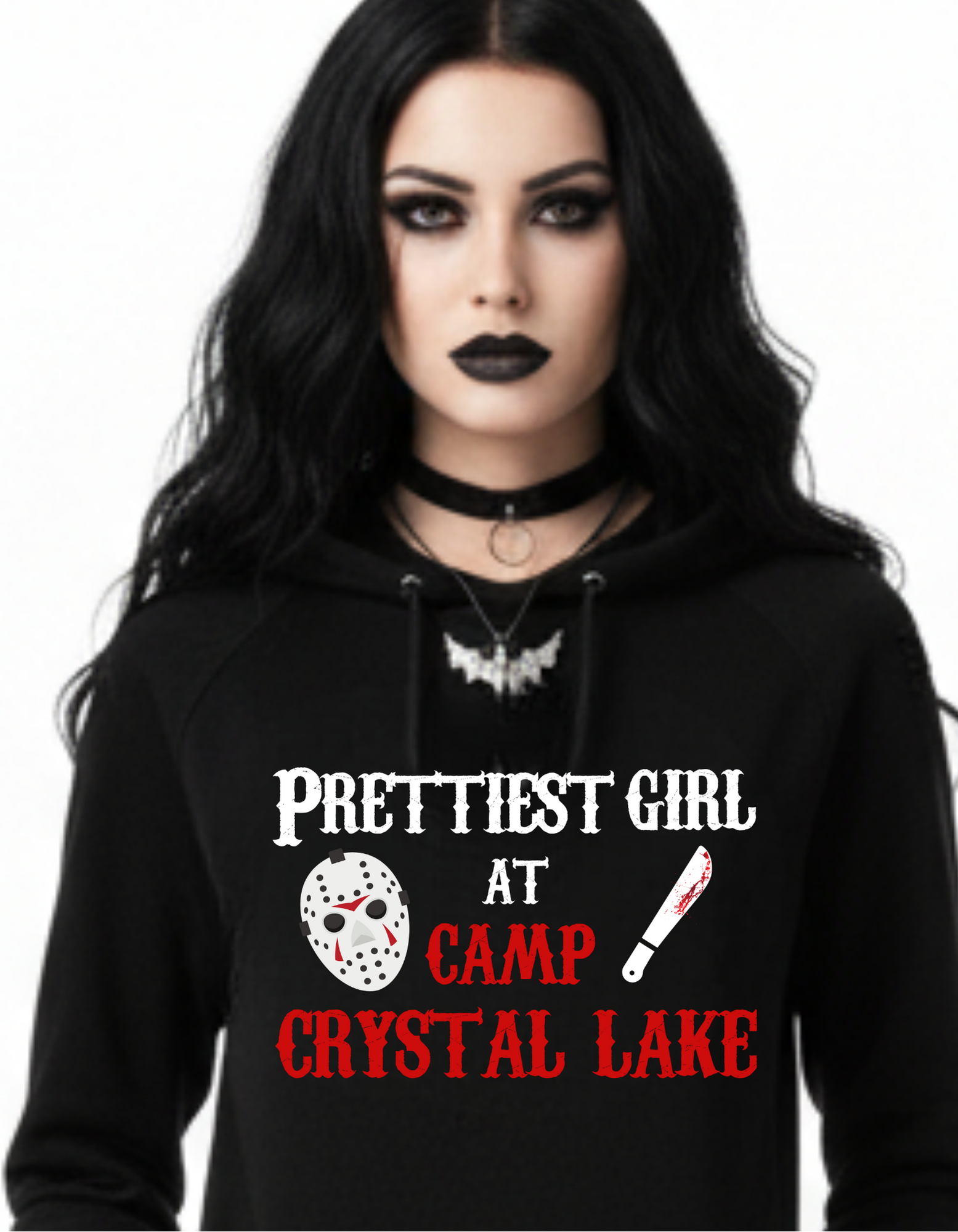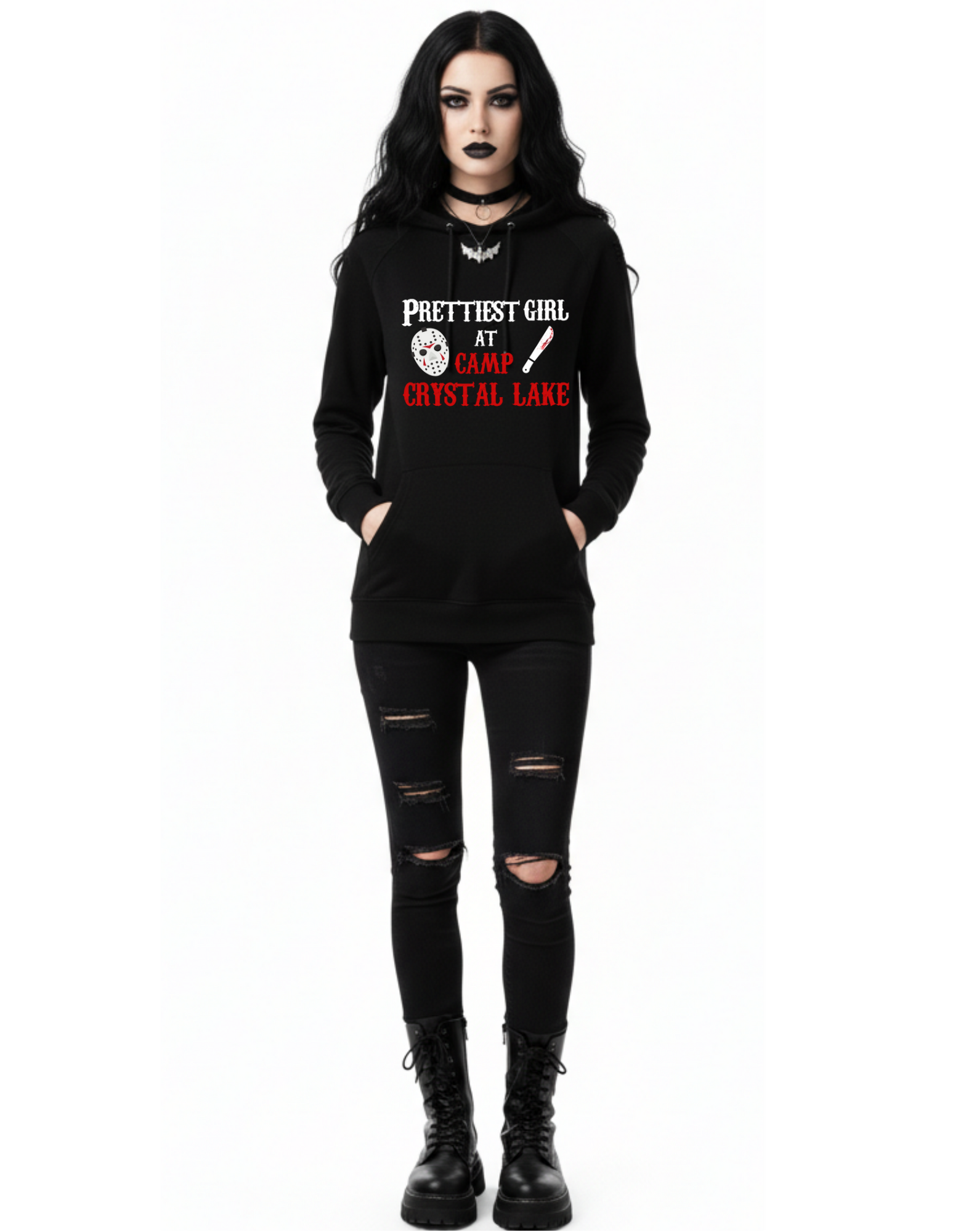 New Friday the 13th Prettiest Girl at Camp Crystal Lake Halloween Custom Black Hoodie Sweatshirt Pullover