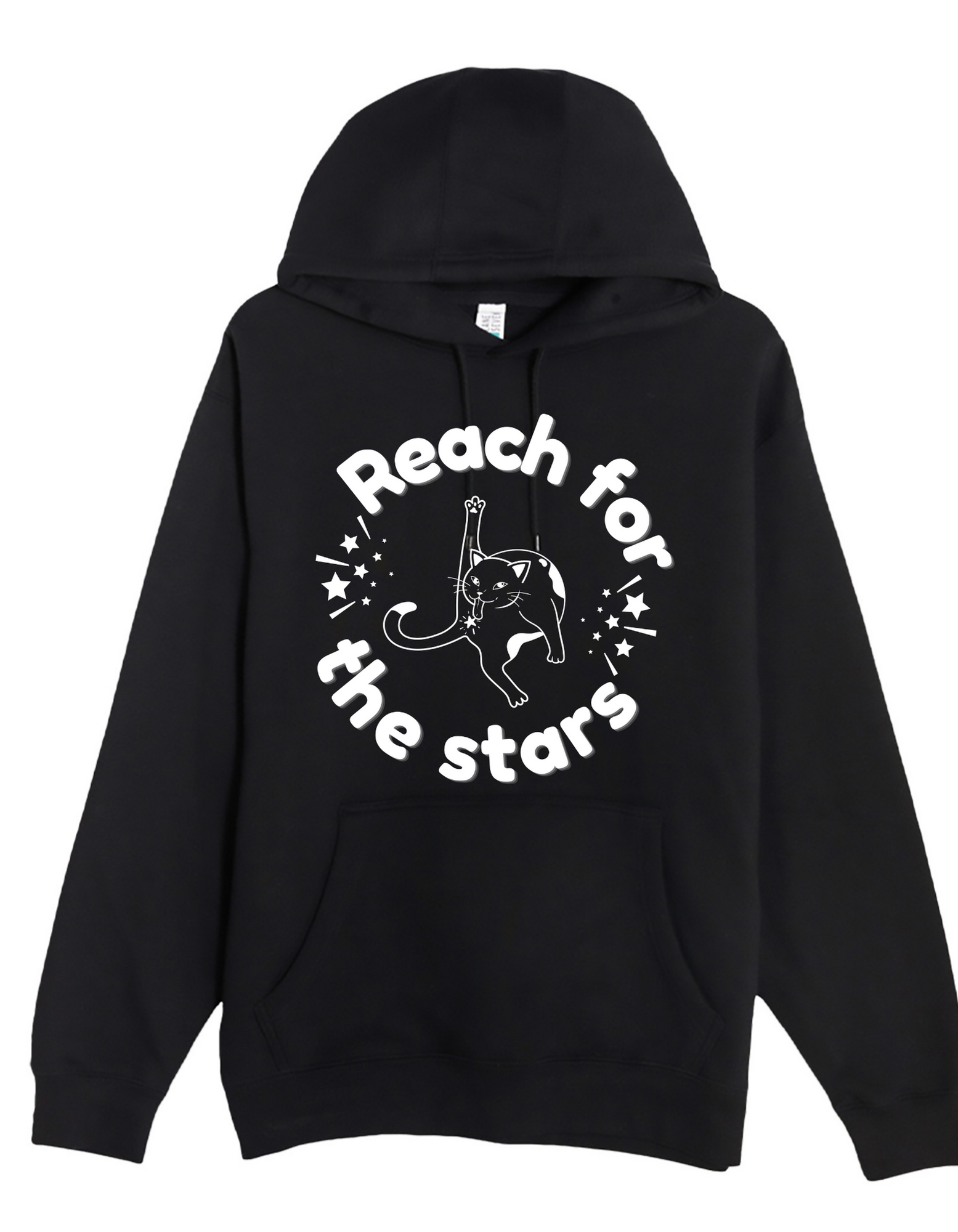 Reach for the Stars FUNNY CAT Custom Black Hoodie Sweatshirt Pullover