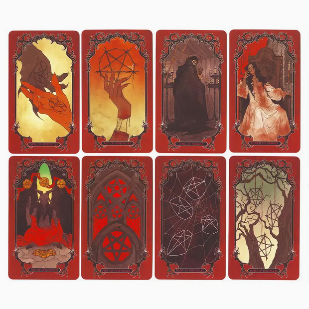 Unleash your inner mystic with the Vintage Dark Horror Tarot Deck. This gothic-inspired deck will transport you to another realm with its vintage aesthetic and dark imagery. Be guided by the cards and explore the unknown. Perfect for any tarot lover looking for a touch of darkness in their readings.
