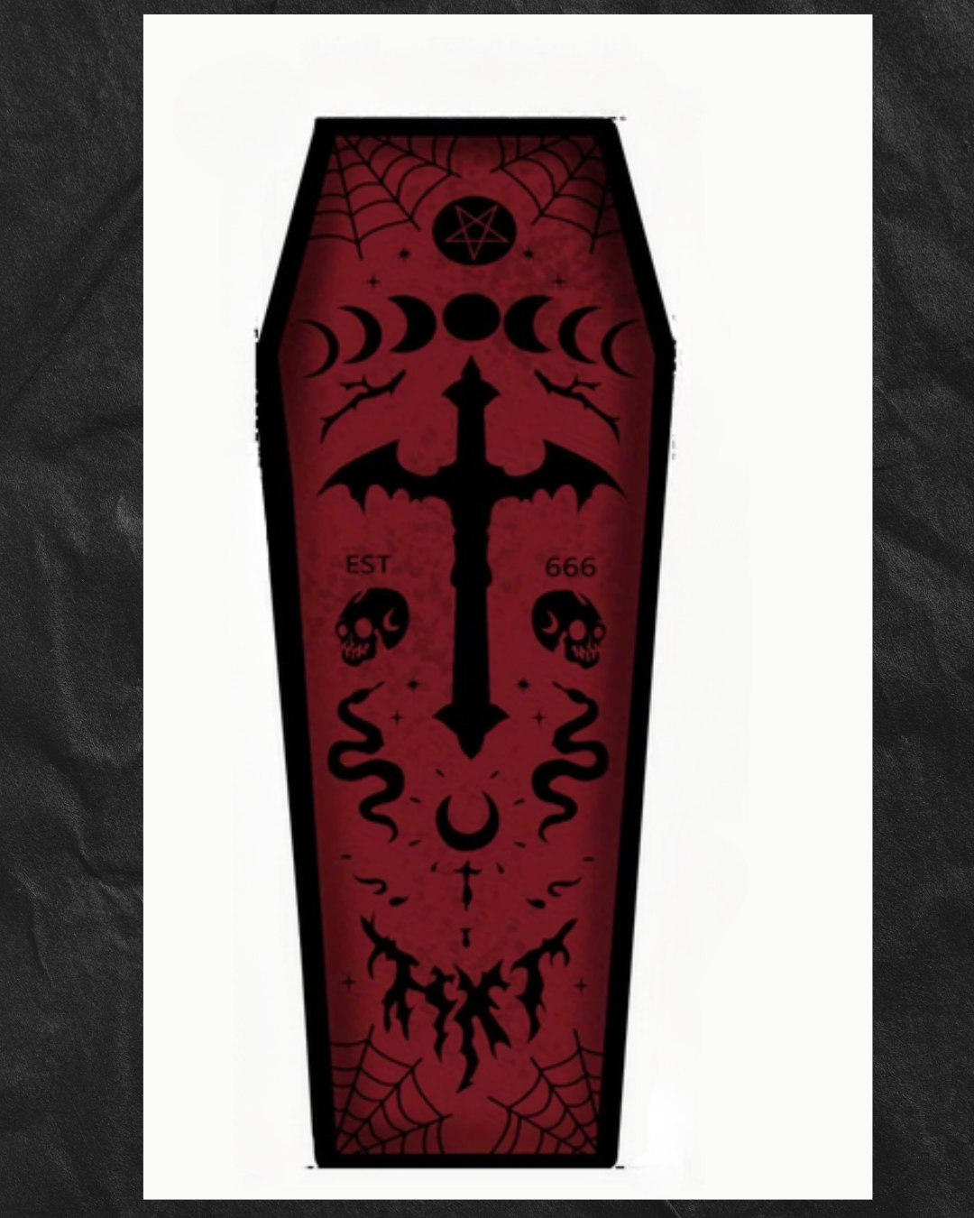 Transform your space into a gothic sanctuary with our Goth Vampire Coffin Shaped Rug Mat. Featuring a coffin shape, this spooky mat is perfect for any fan of the dark aesthetic. Add a touch of macabre style to your home while also keeping your floors clean and protected.