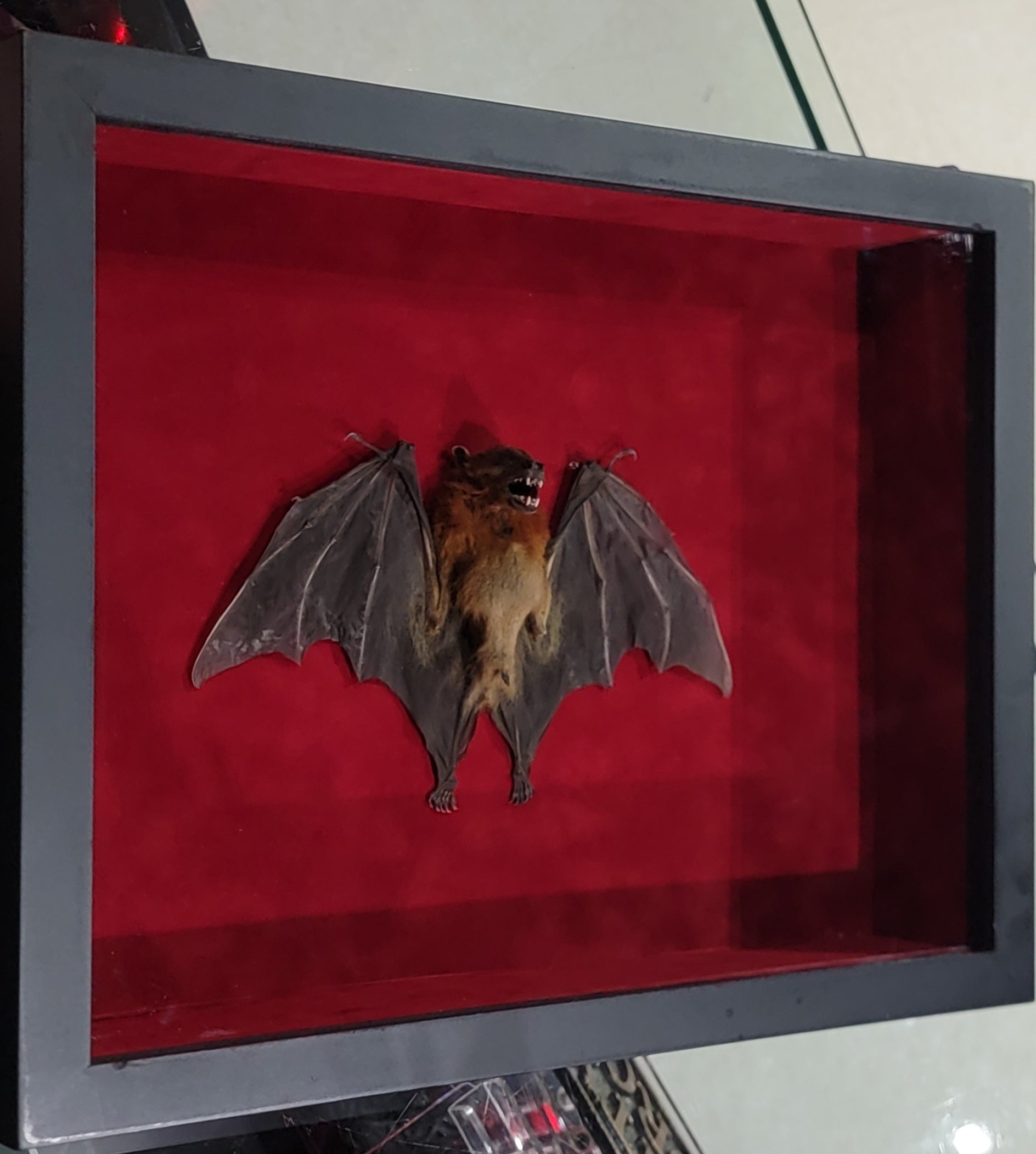 This bat is a REAL taxidermy animal. Each bat is sourced from Java Indonesia and is legal to own.