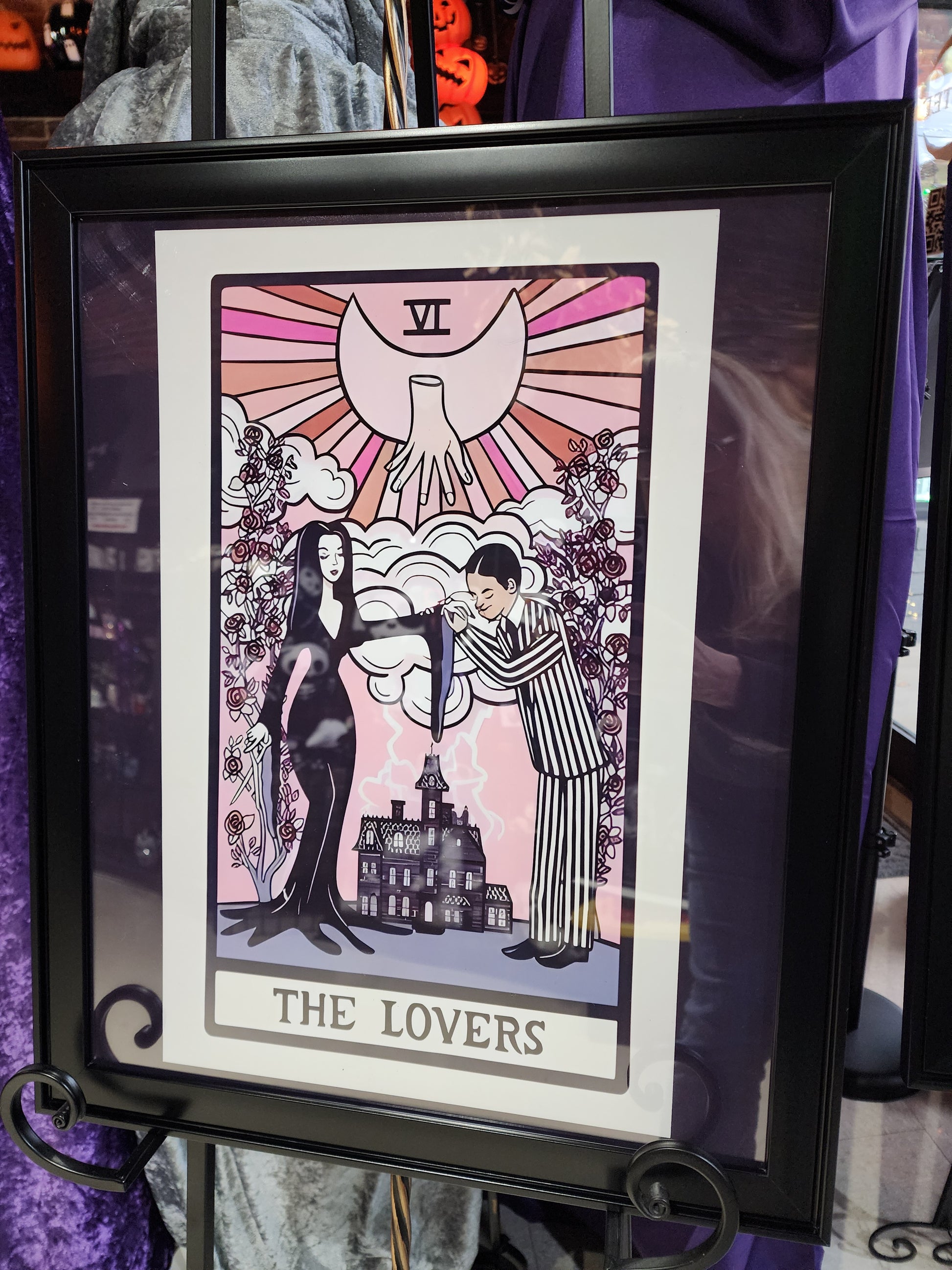 Morticia and Gomez Addams Gothic Valentine "The Lovers" Tarot Card Framed Print