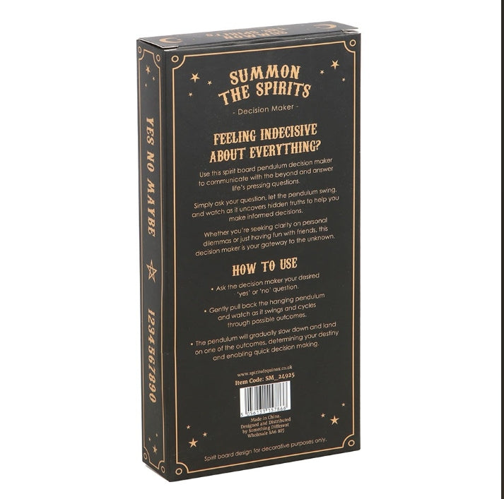 Simply ask your desired 'yes' or 'no' question and watch as the pendulum cycles through the possible outcomes and lands on your destiny. Perfect in size for keeping on desktops and side tables for quick decision-making.